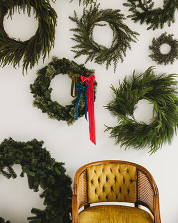 Through the Christmas season our wreath wall will be permanent with the ability to take off or adjust bows to how you would like them! There will also be a 6ft pre-lit flocked tree and a 3ft tree. Use on our white walls or with our cream rolling backdrop.